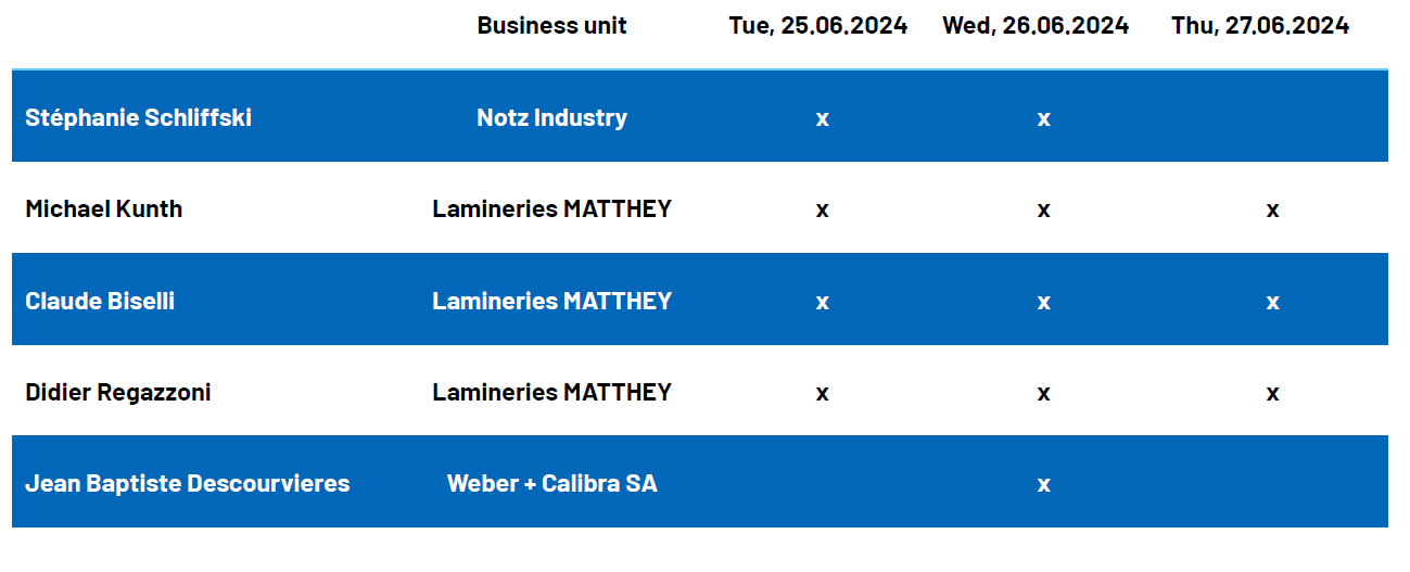 Good to know: Only Lamineries MATTHEY is listed as a NOTZgroup exhibitor in the trade fair directory. However, Weber + Calibra SA can also be found in Hall GS at our stand A05.